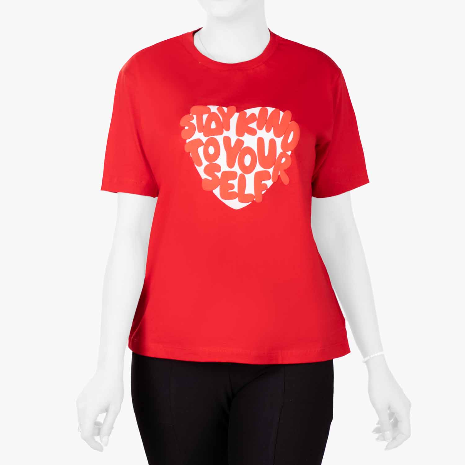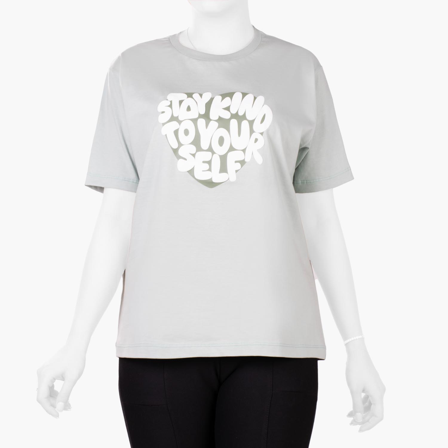 تیشرت زنانه C381 از جنس یکرو پنبه است. مناسب استفاده در فصول بهار و تابستان می باشد.کپ این تیشرت آزاد و راحت است. مدل آستین این تیشرت کوتاه است که لبه آن هم رنگ و هم جنس پارچه اصلی تیشرت می باشد.مدل یقه این تیشرت زنانه گرد است و لبه آن هم رنگ و هم جنس پارچه اصلی تیشرت می باشد.روی سینه این تیشرت زنانه یک قلب با رنگ مخالف کار شده که داخل آن عبارت انگلیسی چاپ شده است