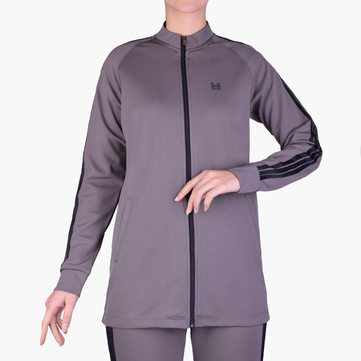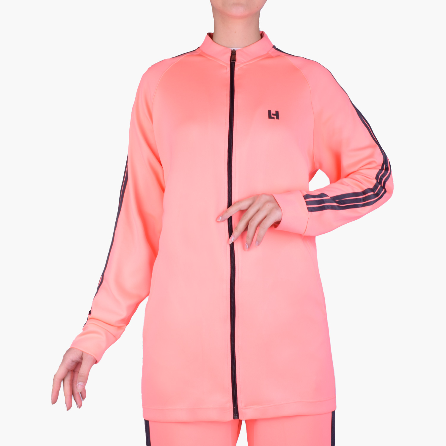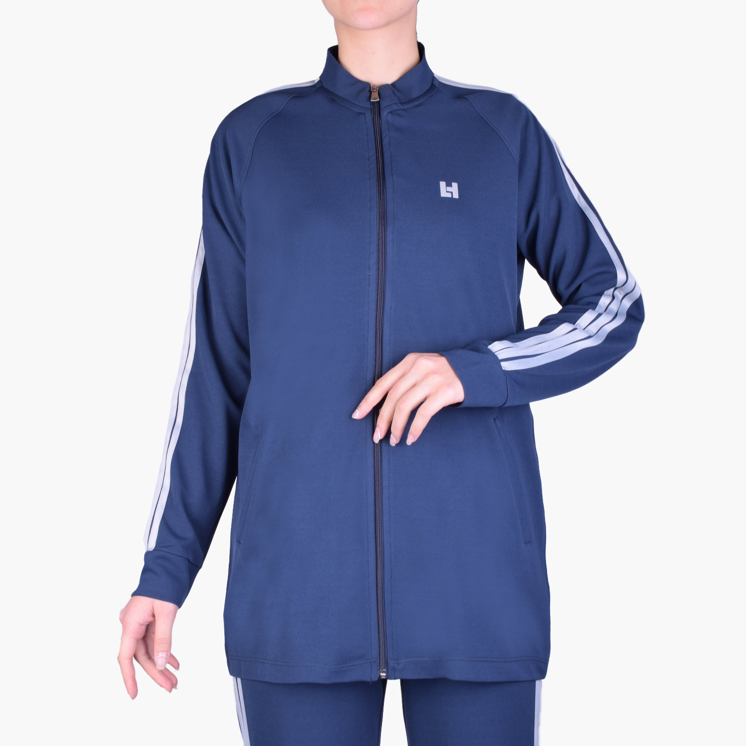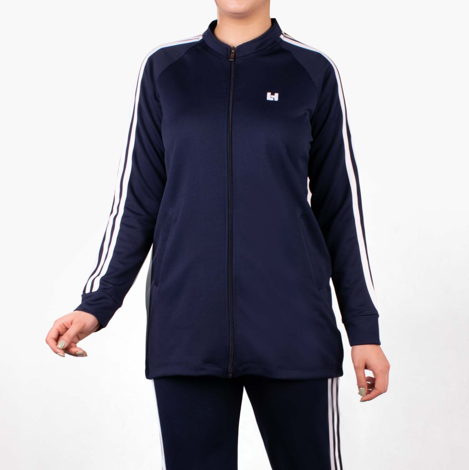 مانتو c326 از جنس غواصی است. مناسب استفاده در فصول بهار و تابستان می باشد. مدل پارچه این مانتو، ساده است و کپ آن آزاد می باشد. مدل یقه این مانتو گرد و سه سانتی است و از جنس پارچه اصلی می باشد. این مانتو دارای زیپ است و به وسیله آن باز و بسته می شود. مدل آستین این مانتو بلند است و دارای سه نوار سفید می باشد و مچ این آستین پنج سانت است که به صورت خودسر دوخته شده است. پشت این مانتو ساده و بدون برش است و لوگوی ژلاتینی هالیدی پشت مانتو چاپ شده است. روی سینه این مانتو لوگو ژلاتینی H چاپ شده است