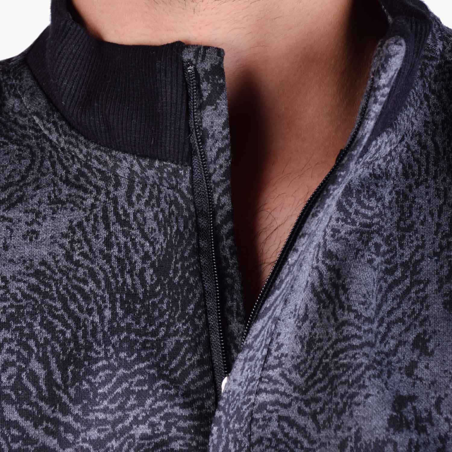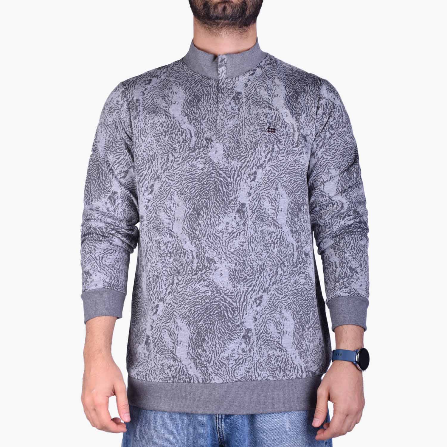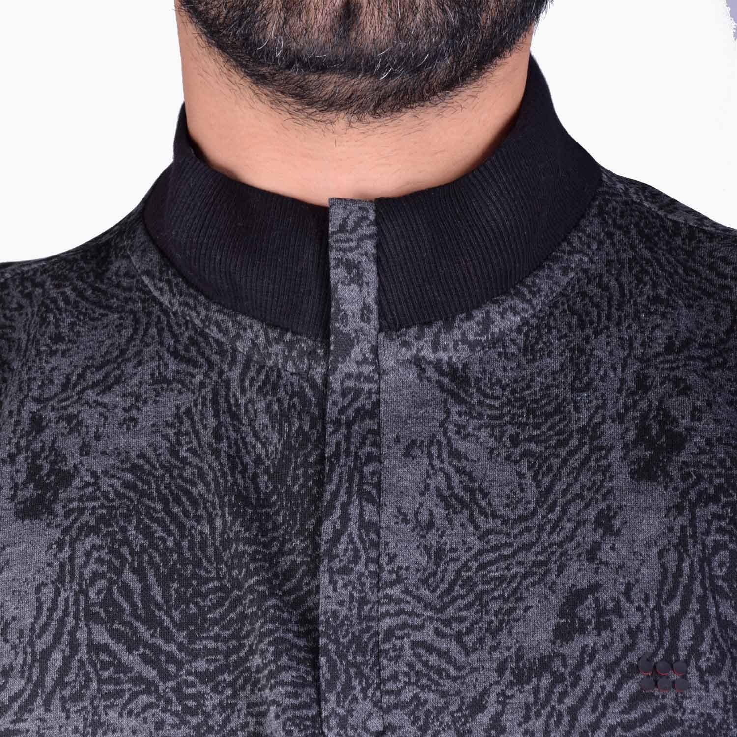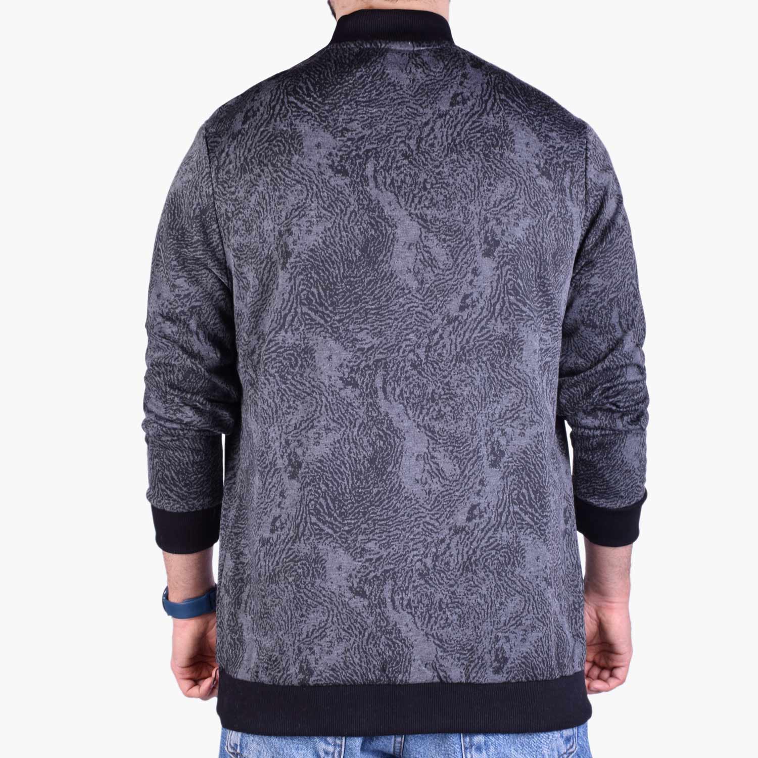 این لباس مردانه دارای طرح ژاکارد ببری است که در بافت پارچه ایجاد شده و به صورت چاپی نمی باشد.