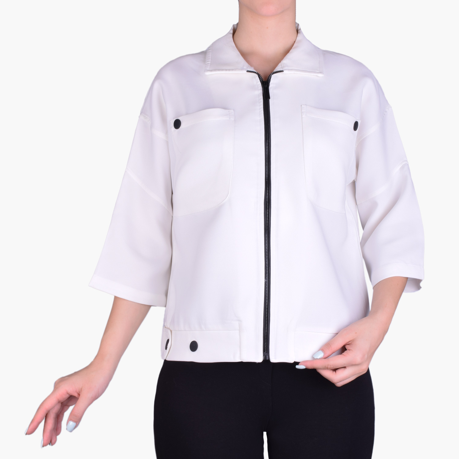 اورشرت زنانه C957 توسط زیپ باز و بست می شود.